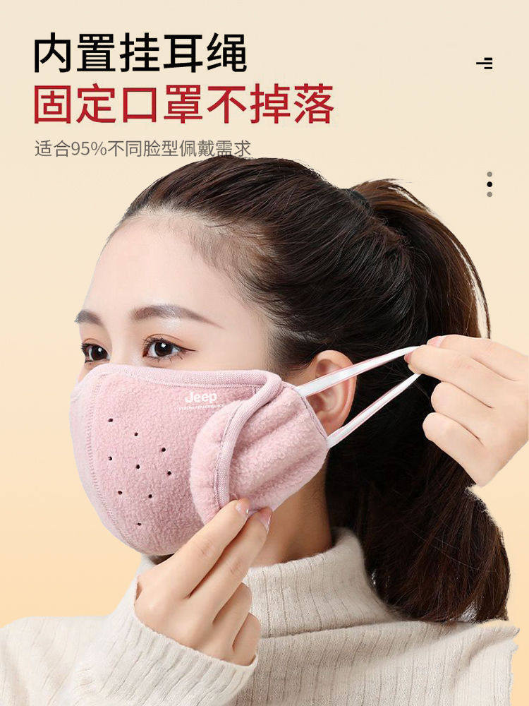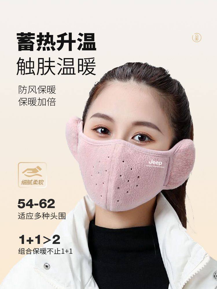 jeep吉普冬季保暖耳罩女士加绒口罩防风电动车耳朵耳包防冻