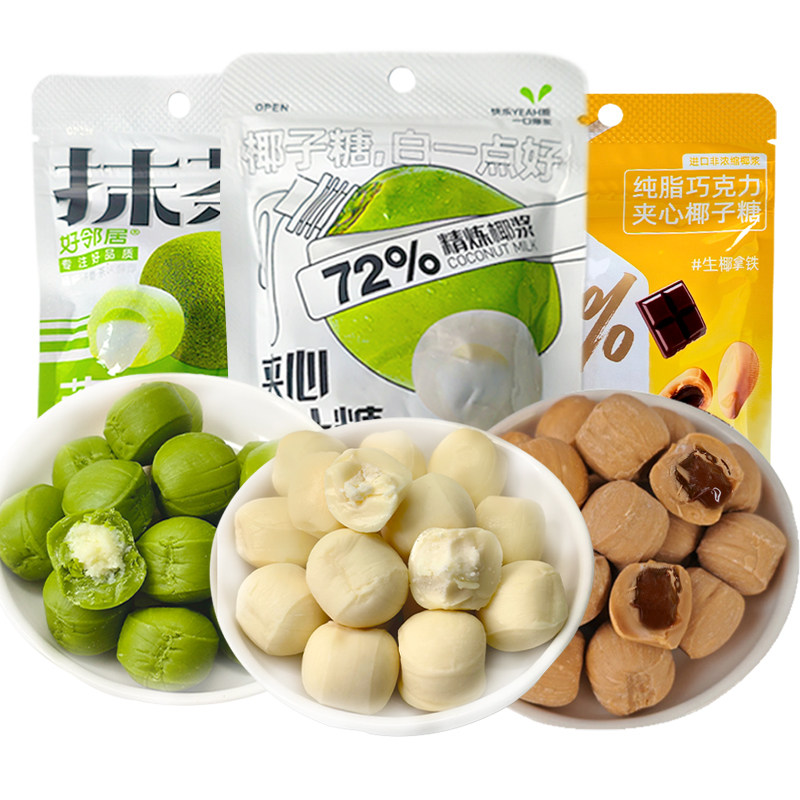 好邻居抹茶生椰拿铁椰子糖混合夹心喜糖果下午茶零食爆浆巧克力