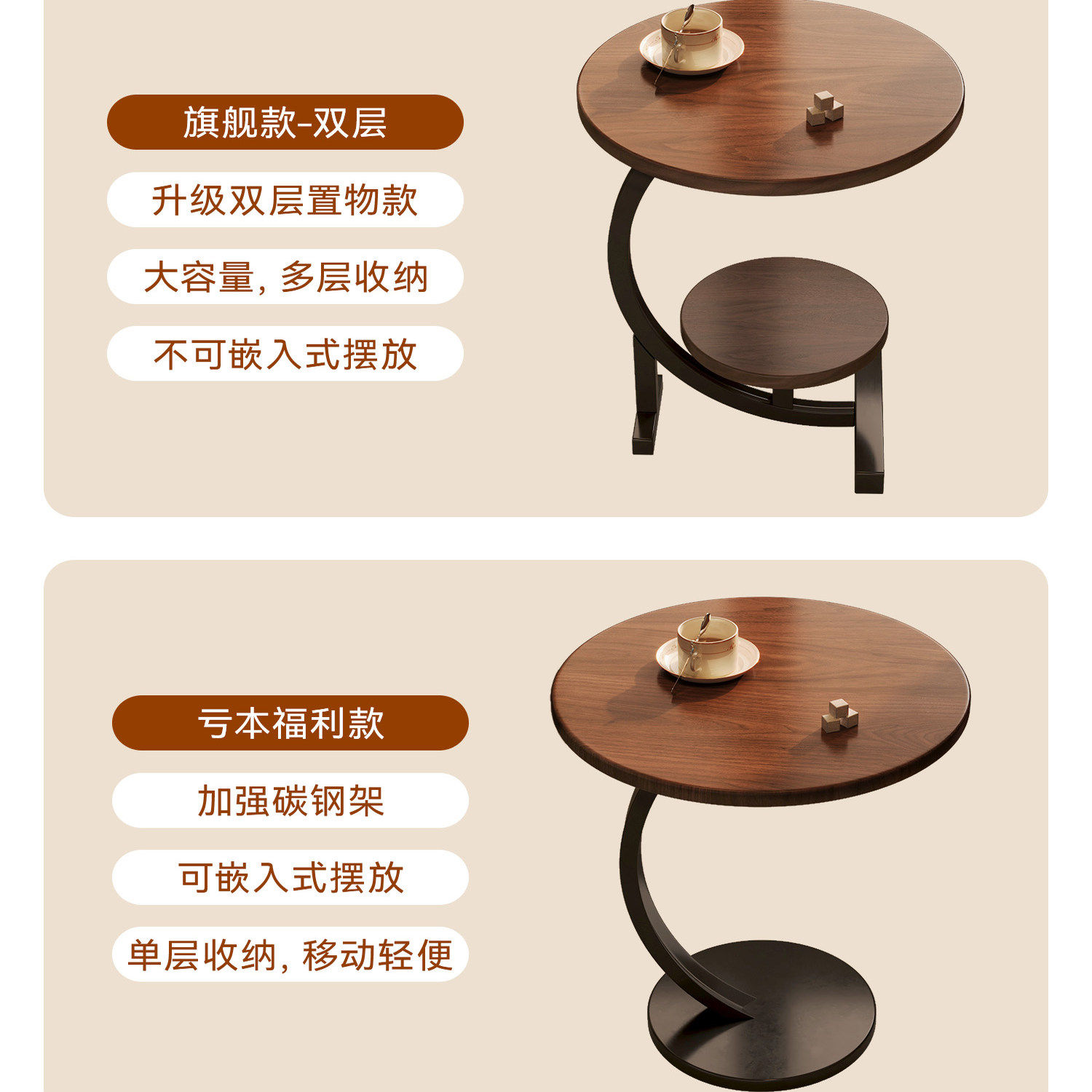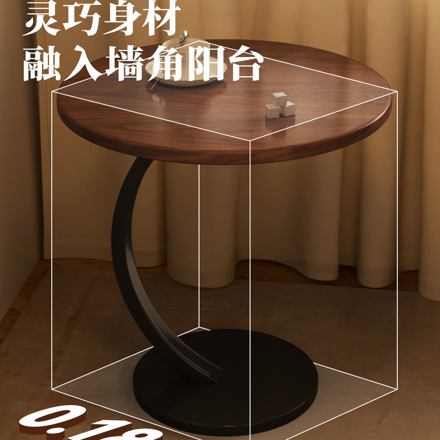 客厅胡桃边几小桌子茶几沙发边柜网红迷你小圆桌角几置物桌床头桌
