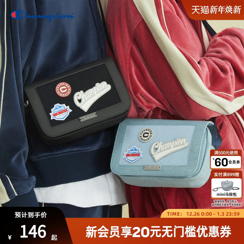 Champion冠军斜挎包相机包男女士同款翻盖徽章撕撕包痛包小方包