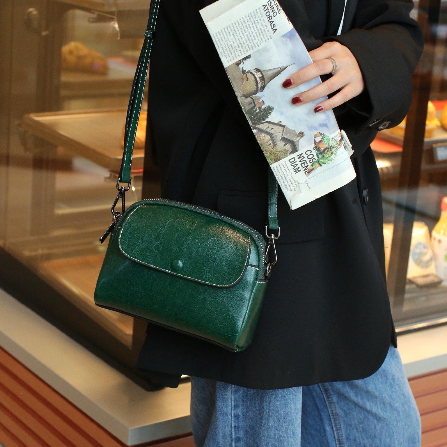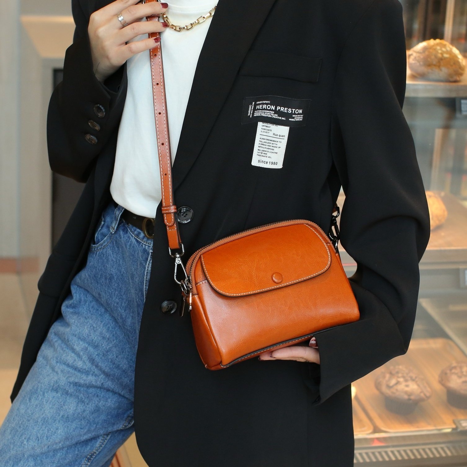 油蜡新款轻奢小方包女包牛皮真皮包复古高级单肩斜挎包百搭简约包