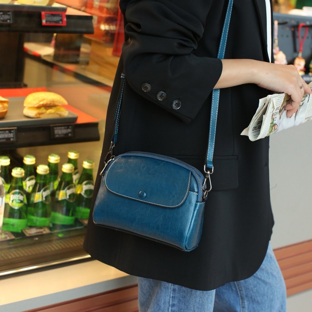 森系小清新复古油蜡牛皮简约横款小方包原创女士单肩包手机斜挎包