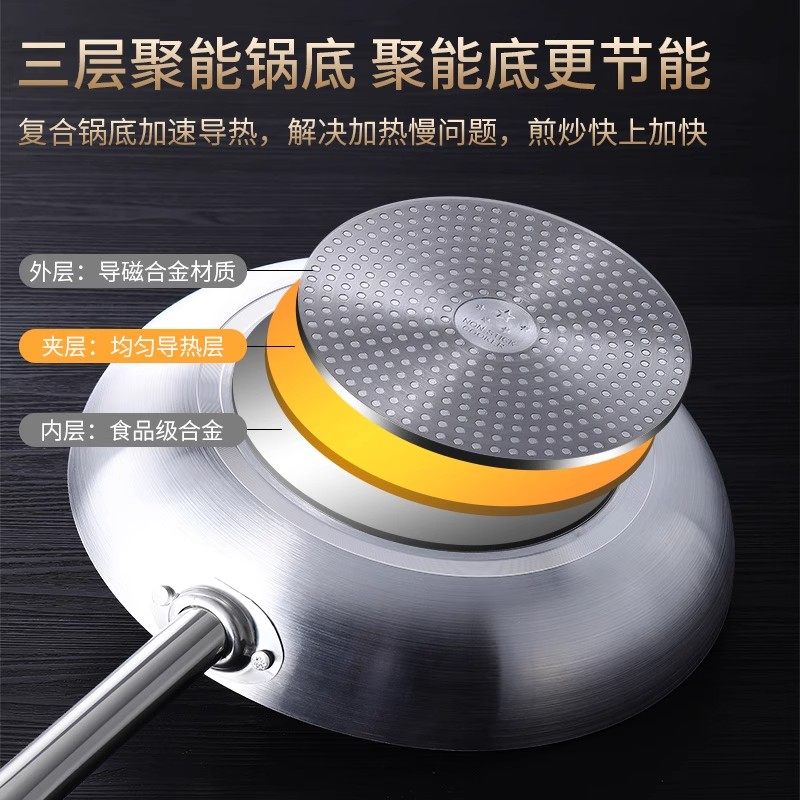华际达平底锅316不锈钢不粘锅家用牛排煎锅炒菜炒锅无涂层电磁炉