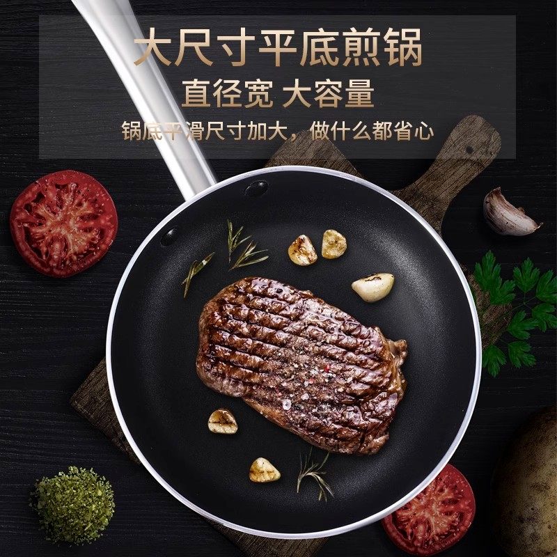 炊大皇无涂层平底锅不粘锅家用牛排煎锅煎蛋电磁炉燃气灶专用钛锅
