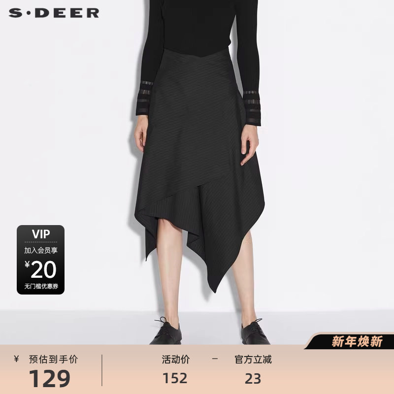 S·DEER圣迪奥女装秋个性撞色条纹不规则拼接长裙S21381122