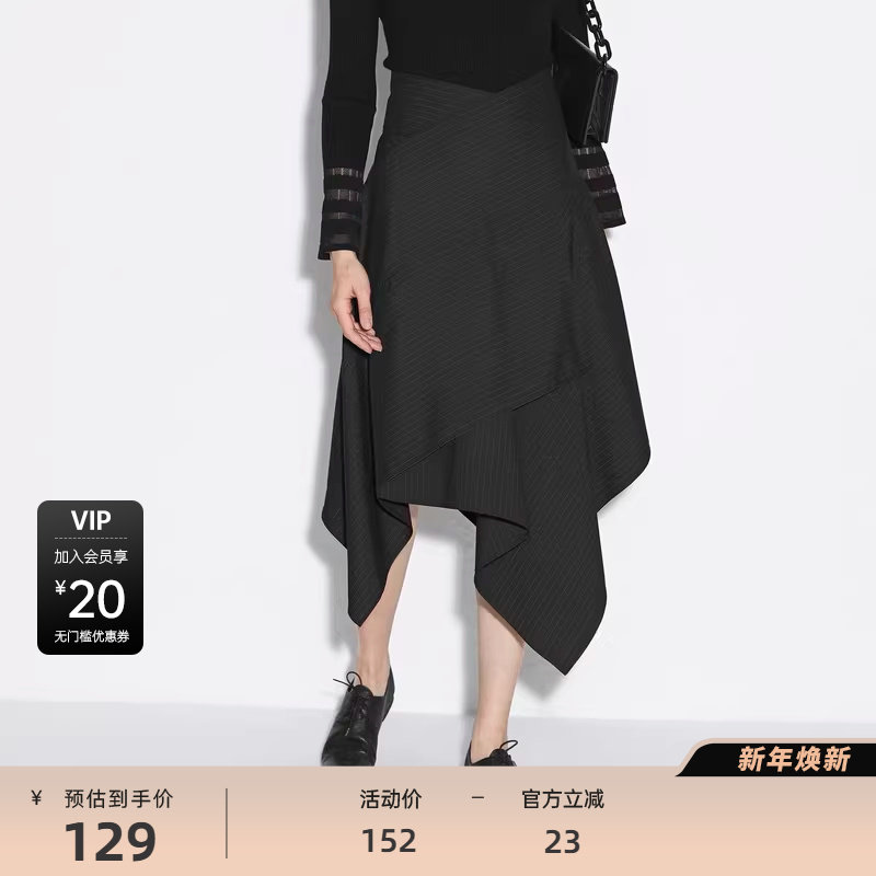 SIINSIIN直筒裙加绒2025年新款高腰收腹半身裙女黑色显瘦A字裙tk