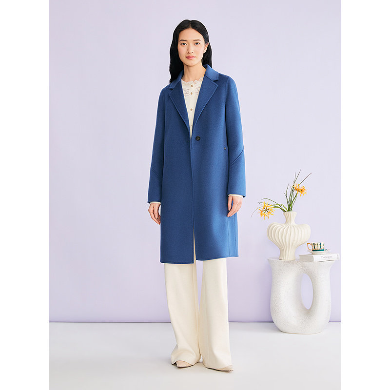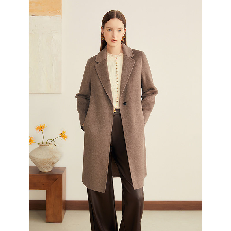 YINER音儿专选2025冬季新款一粒扣西装领蚕丝羊毛混纺双面呢大衣