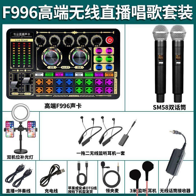 F996手机直播声卡话筒无线通用唱歌全功能2024款直播套装全套设备