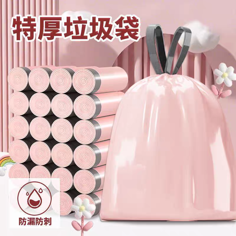 冰莓粉加厚手提式垃圾袋抽绳式家用塑料袋厨房宿舍大号粉色收纳袋