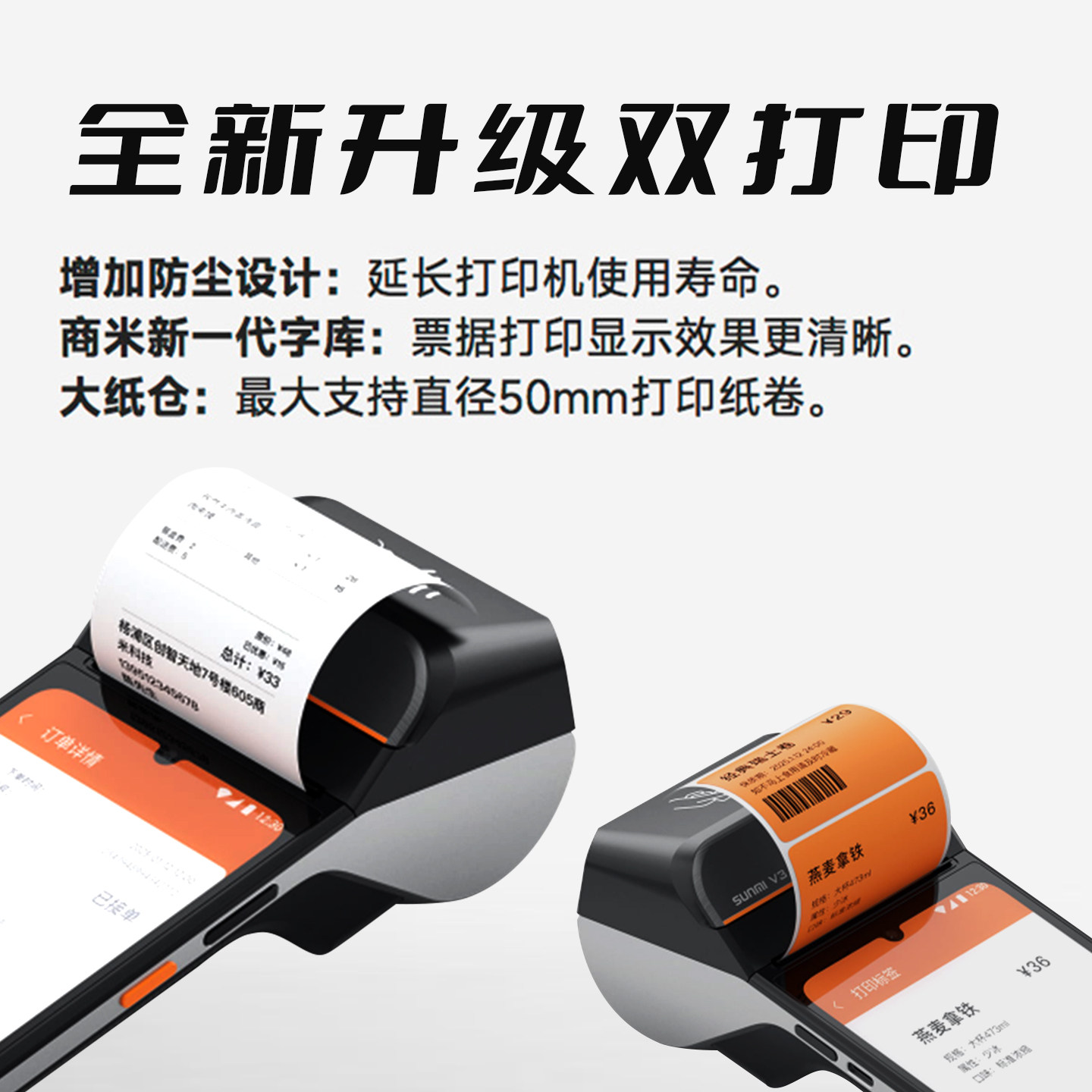 商米V3手持收银机餐饮移动点餐支付排队叫号充值扣费办会员卡游乐园便携收银机加油站消费积分软件管理一体机