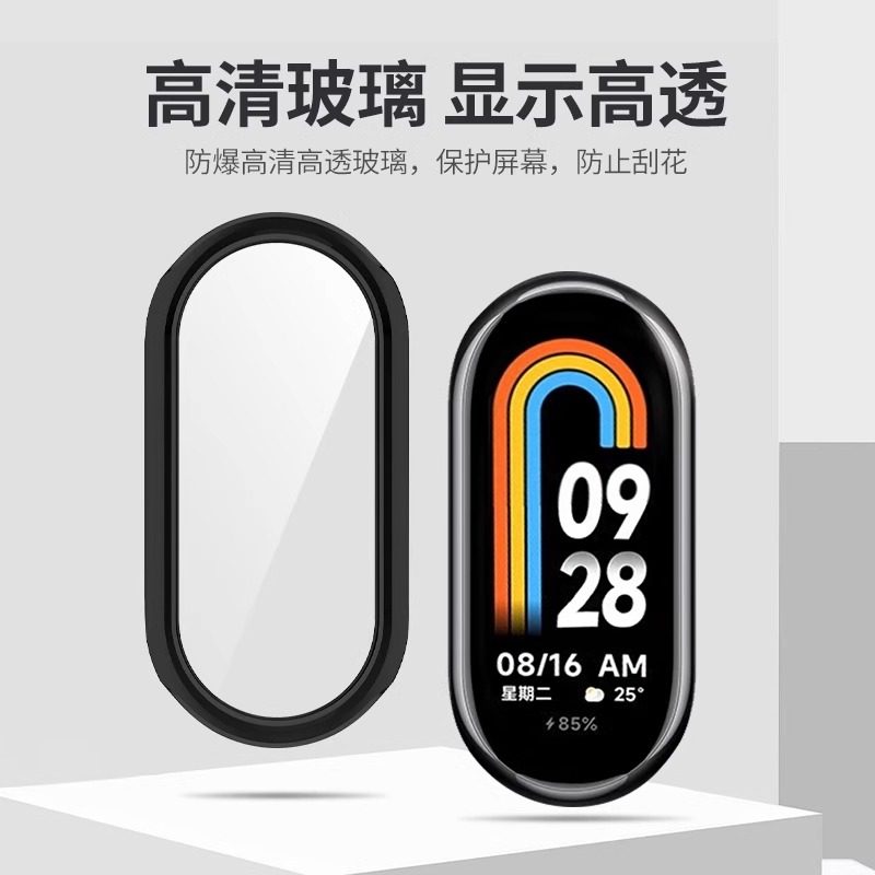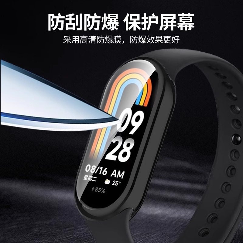适用小米手环10保护壳小米9nfc版手环钢化壳膜一体8代保护套7代6/5/4/3代手表壳配件全包保护膜数码粉色黑色