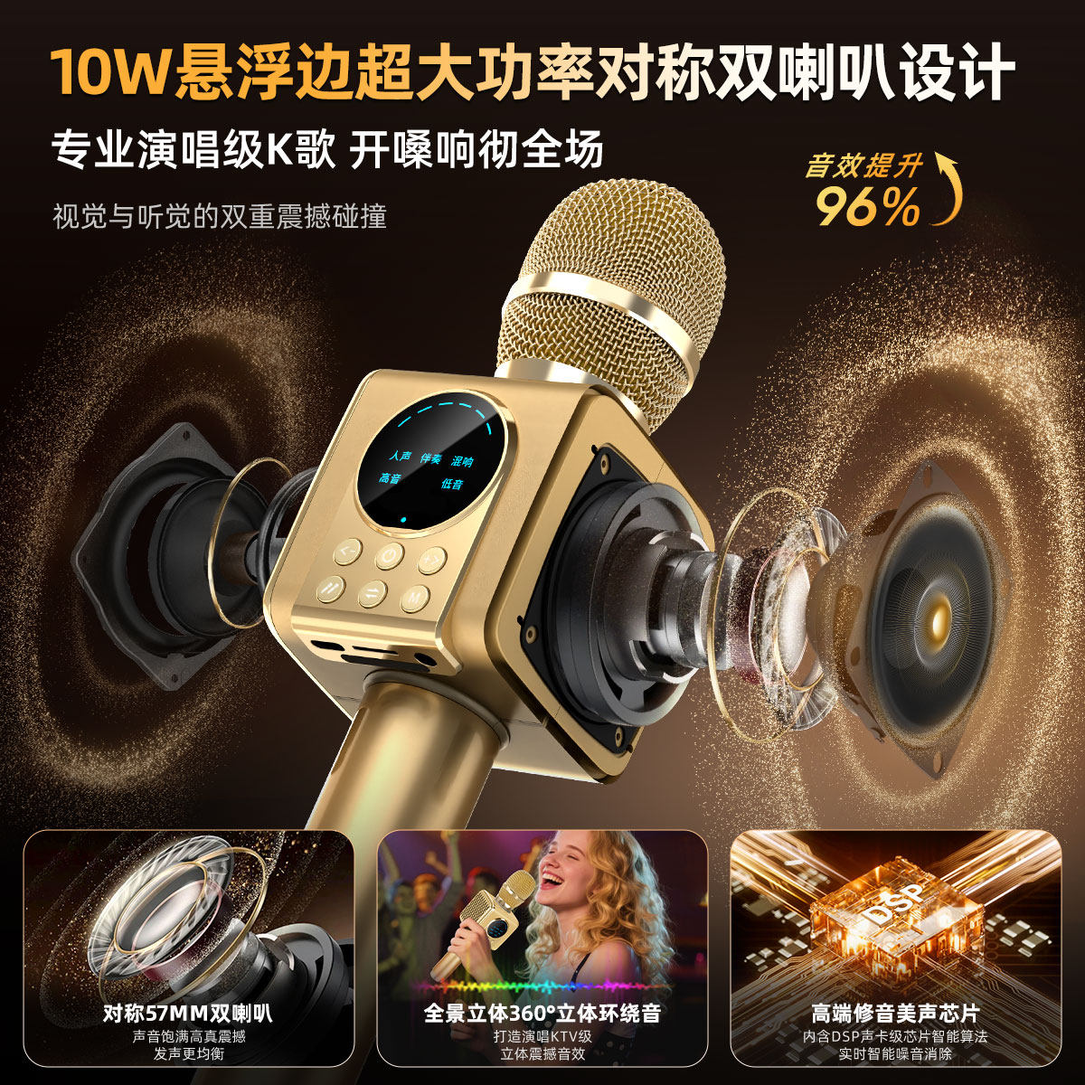 内置DSP声卡 智能降噪美声 消原音 可插TF卡