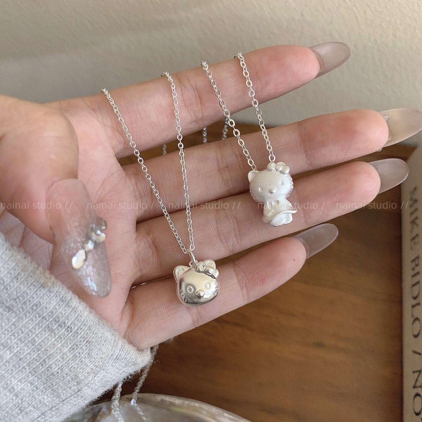 KT项链~磨砂银色kitty猫咪锁骨链2025新款甜美少女颈链卡通配饰A