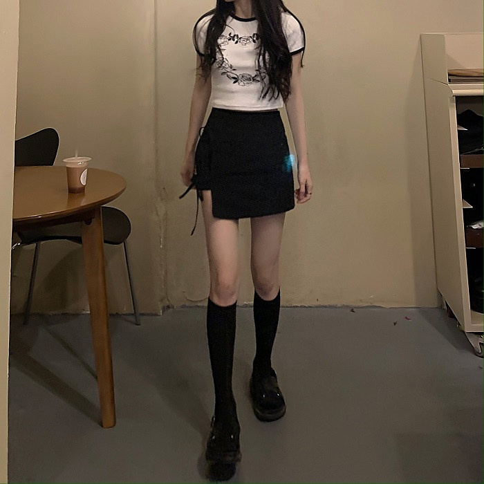 大码显瘦不规则短裤裙女胖MM高腰百搭bm小众学生A字裙包臀半身裙