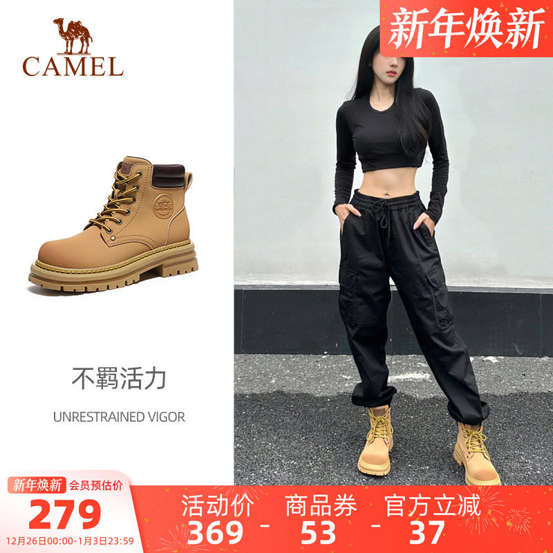 骆驼女鞋2025秋季新款厚底马丁靴女款英伦复古大黄靴户外工装靴