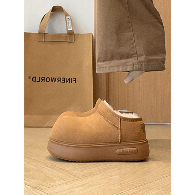 低帮厚底雪地靴女2025新款冬季懒人一脚蹬毛毛棉鞋加绒加厚女鞋子