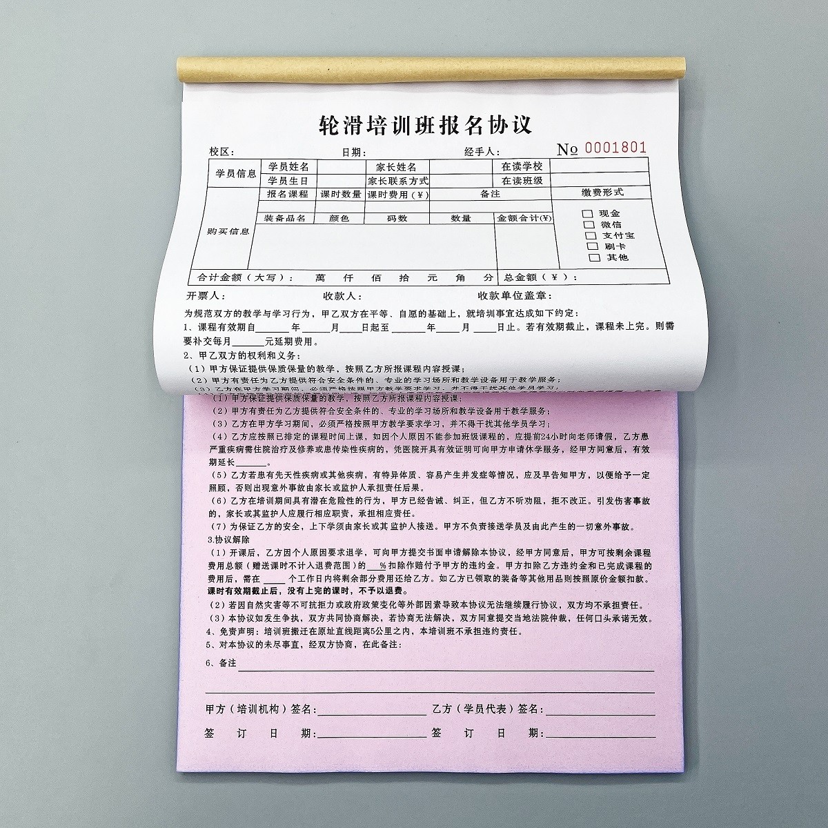 A4轮滑培训班报名协议定制二联兴趣班课程销售合同辅导班收费凭证