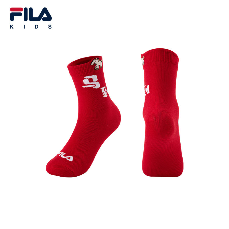 【抗菌功能】FILA斐乐儿童袜子2026年春季新款中性小童新年高腰袜