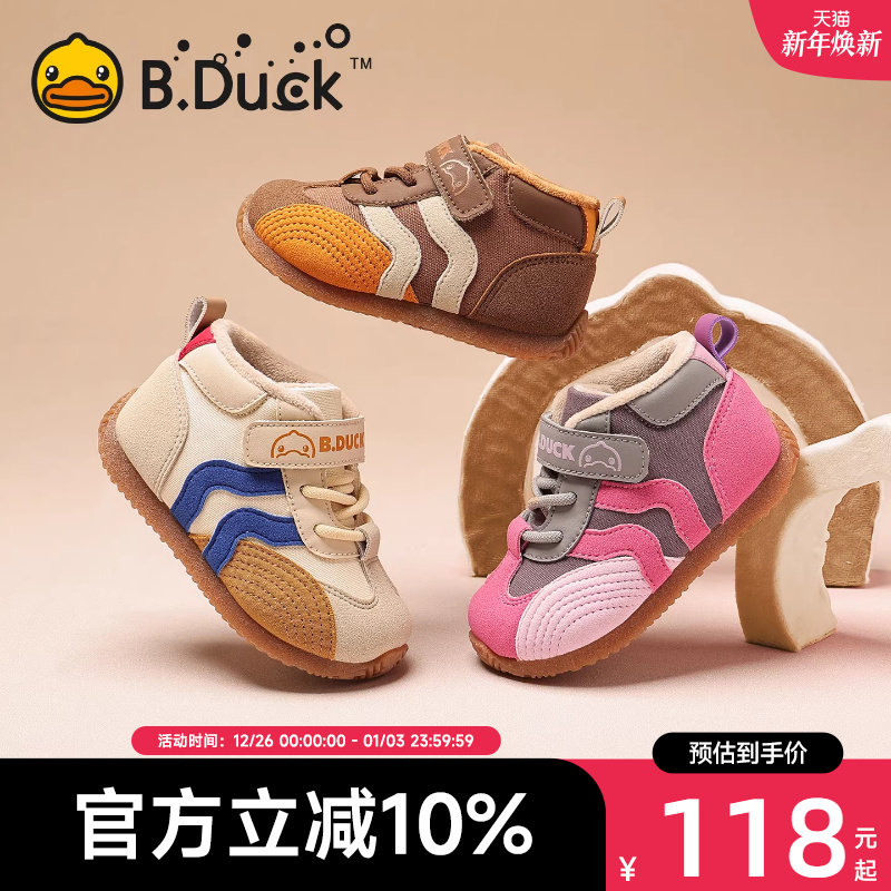 小黄鸭童鞋儿童运动鞋2025冬季新款男童高帮二棉加绒保暖小童宝宝