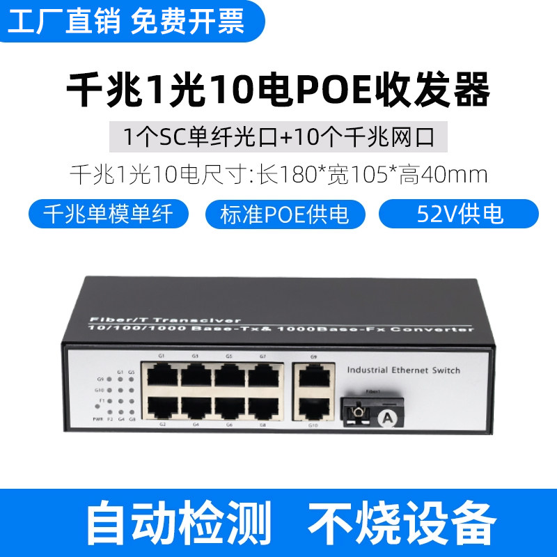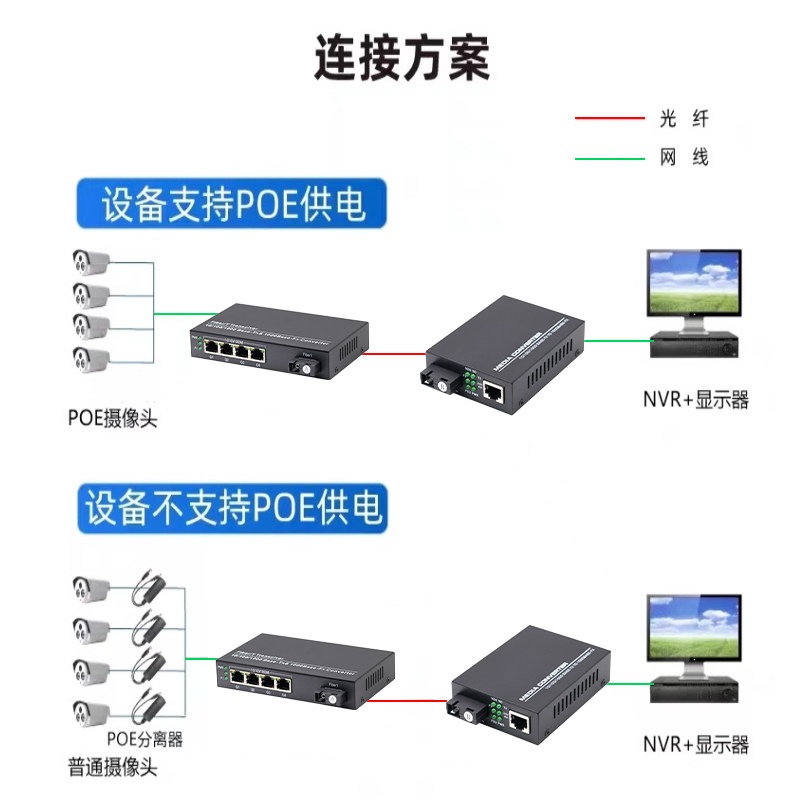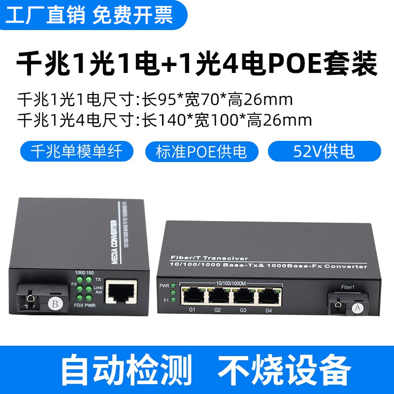 千兆1光4电POE光纤收发器 光电转换器 一光四电POE光纤交换机网络监控摄像头供电百千兆2光4电poe光电收发器