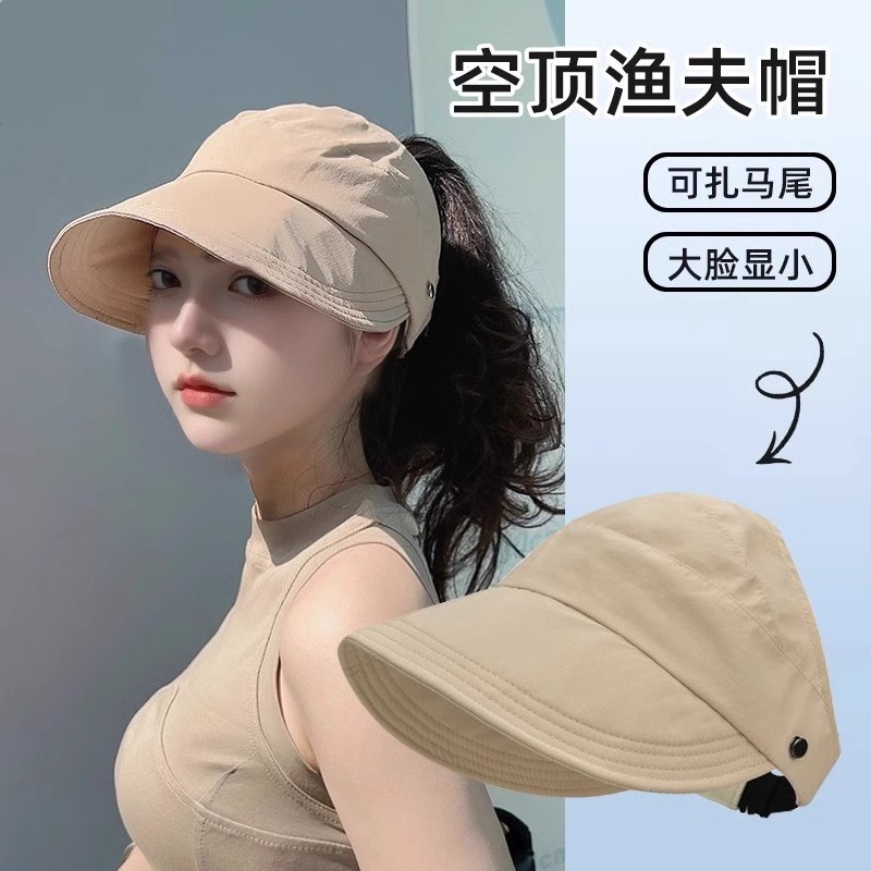 防晒帽女赵露思2025新款渔夫帽太阳显脸小空顶速干可挂口罩遮阳帽