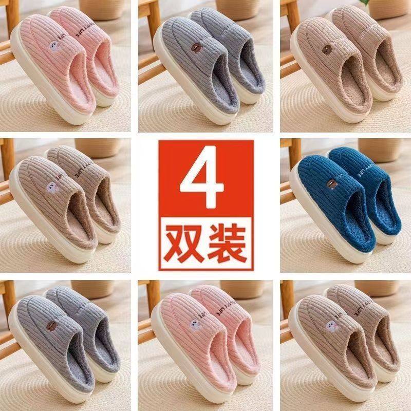 4双棉拖鞋女室内家居防滑保暖情侣家用待客人秋冬季棉拖鞋男2025