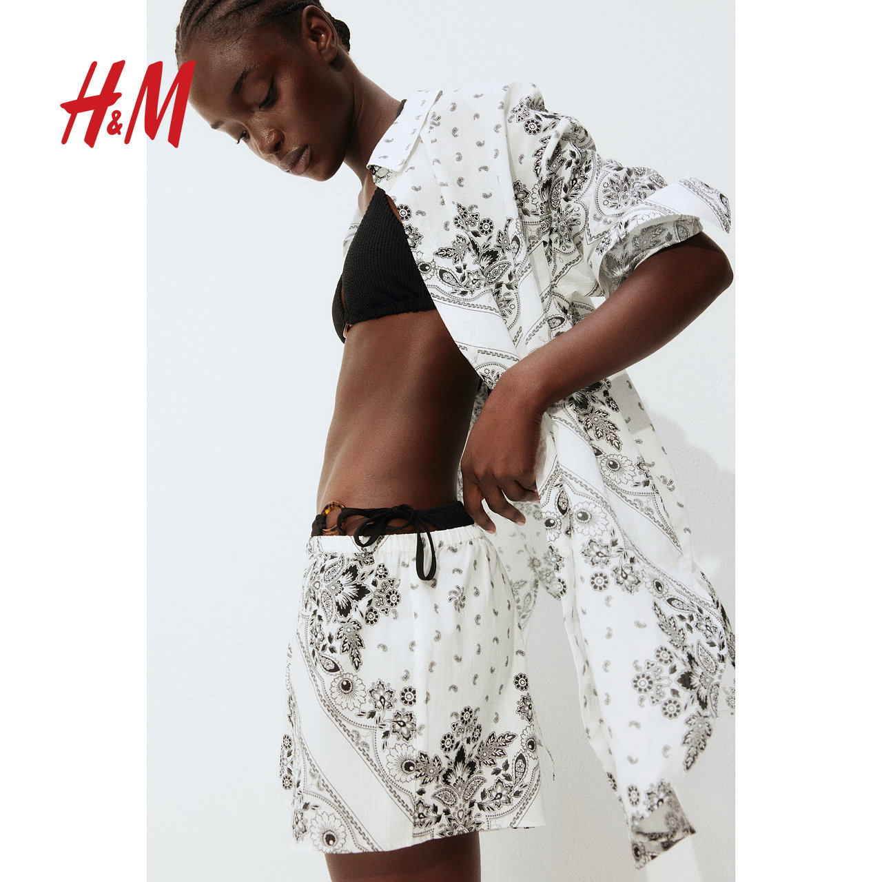 HM2025年冬季新款女装皱褶沙滩短裤1272322