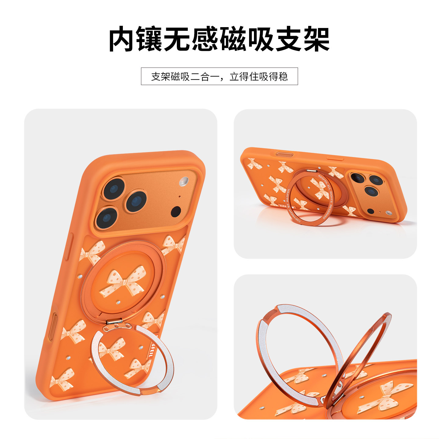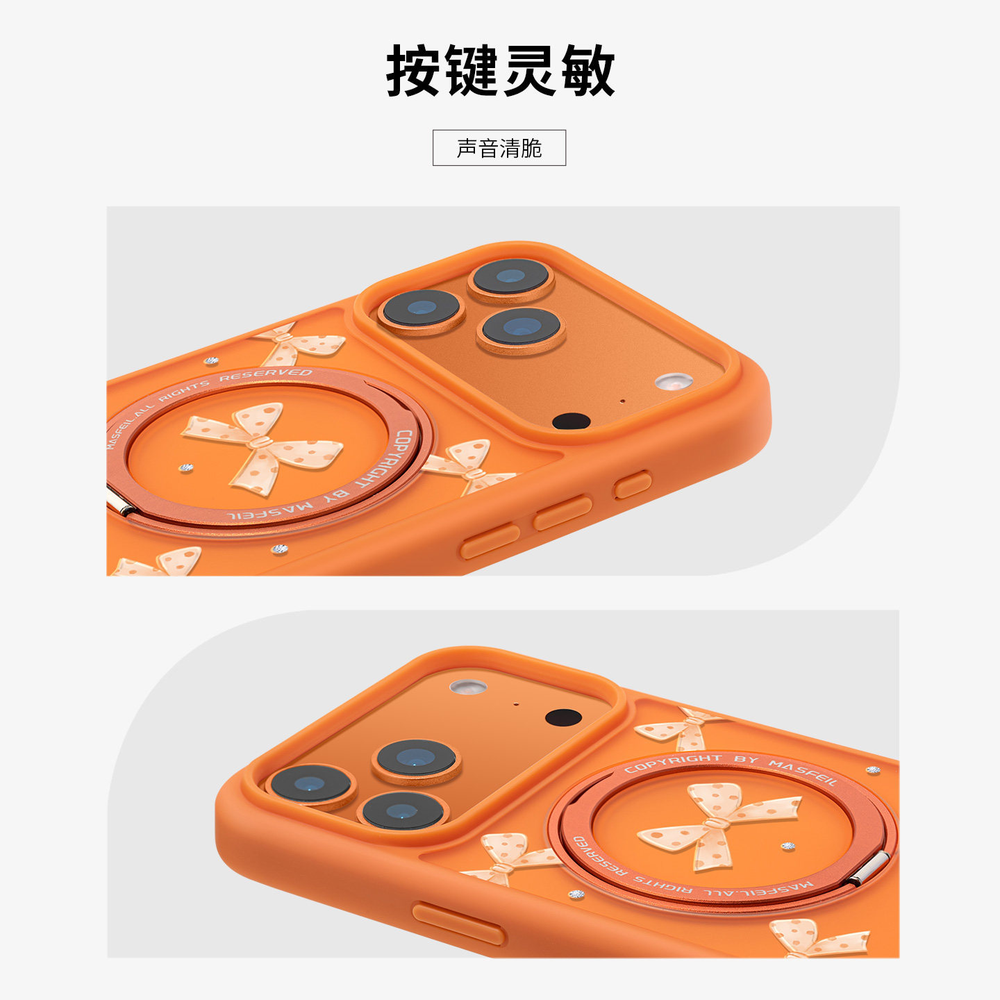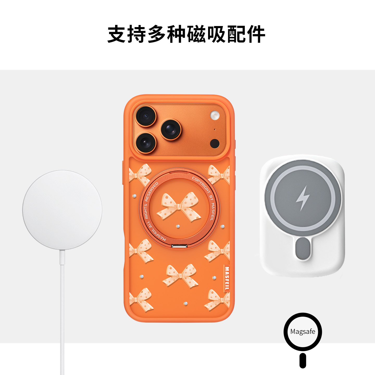 MASFEIL × 蝴蝶结适用苹果17promax手机壳iPhone17pro新款带支架ip17全包Fo5磁吸支点文艺简约高级感保护套