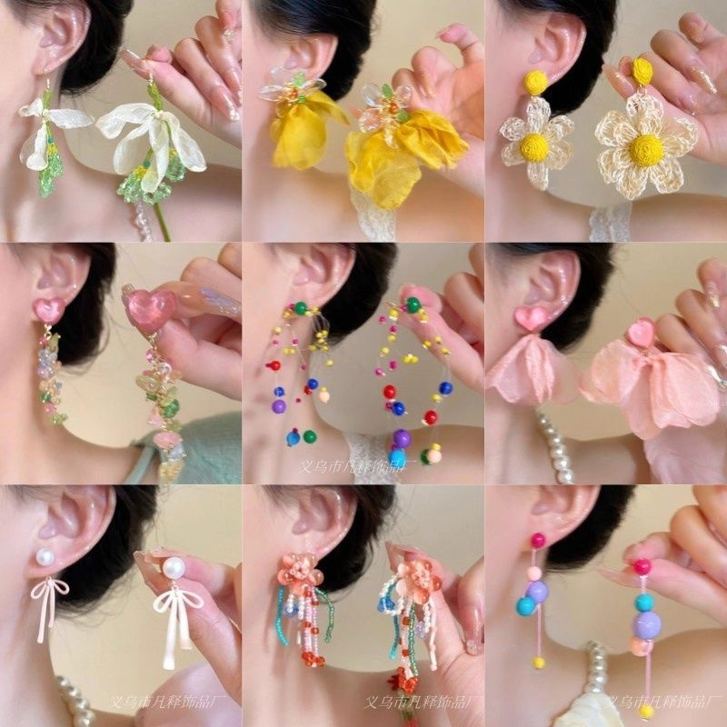 超仙个性花瓣黄色耳钉花朵气质耳环耳坠雪纺夸张新款度假饰品耳饰