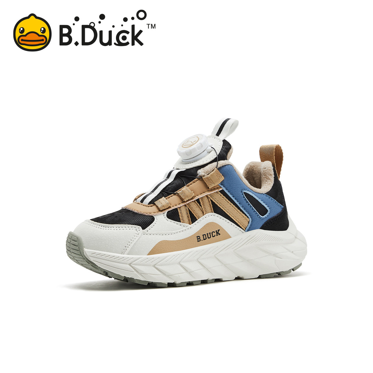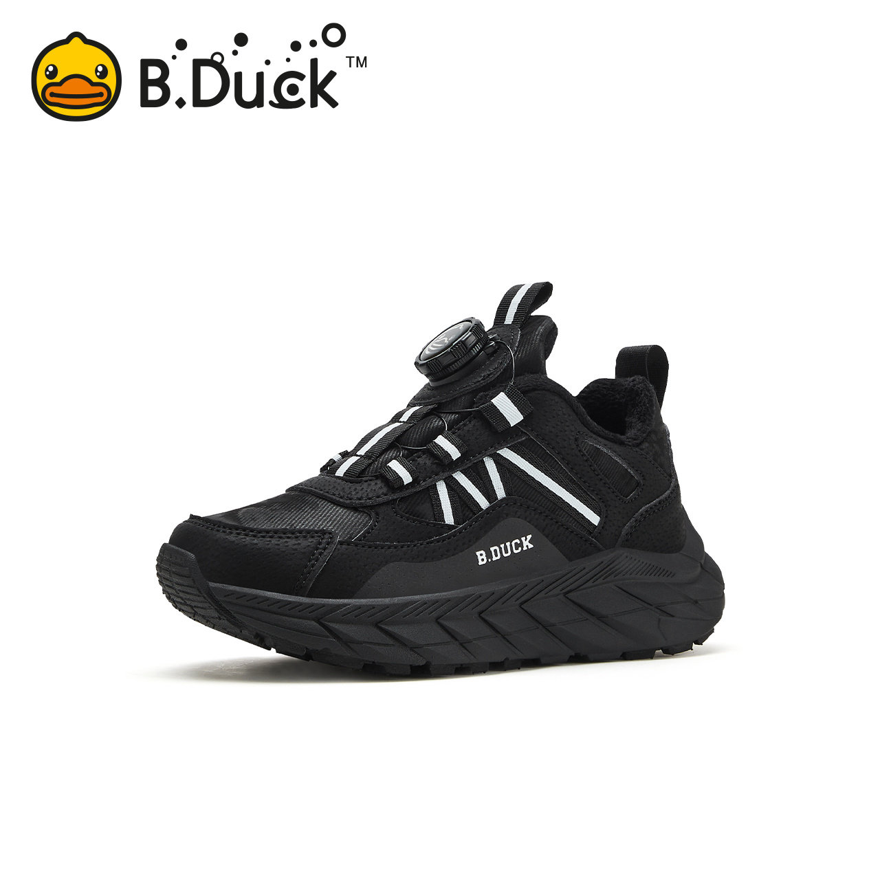 B.Duck小黄鸭男童运动鞋加绒冬季新款旋转扣大童棉鞋儿童鞋子二棉