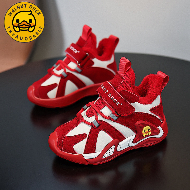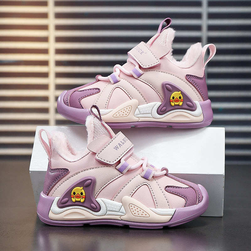 小黄鸭女童大棉鞋加绒保暖2025冬季新款软底耐磨时尚男童运动鞋子