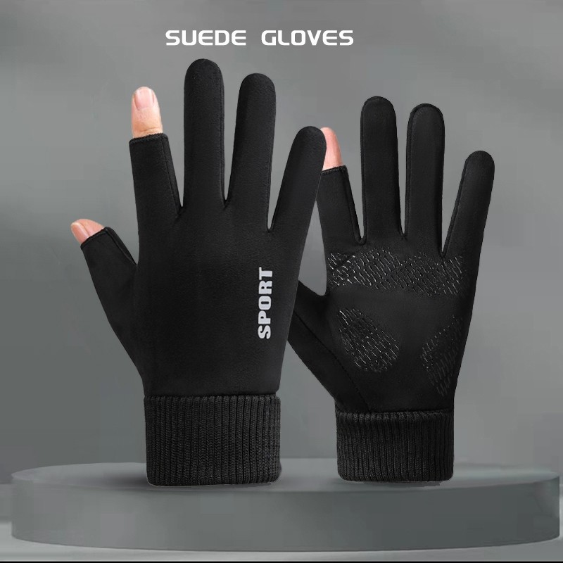 手套男冬季保暖女骑行开车钓鱼外卖半指耐磨防滑露指二指触屏骑车