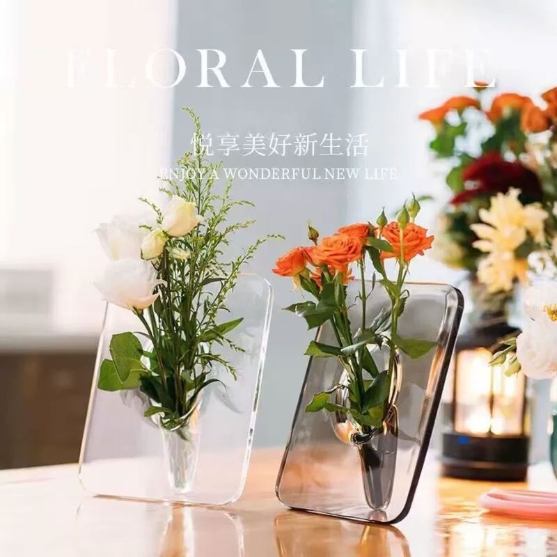 ins北欧风艺术相框玻璃花瓶摆件卧室仿真花餐桌摆设可水养插花器