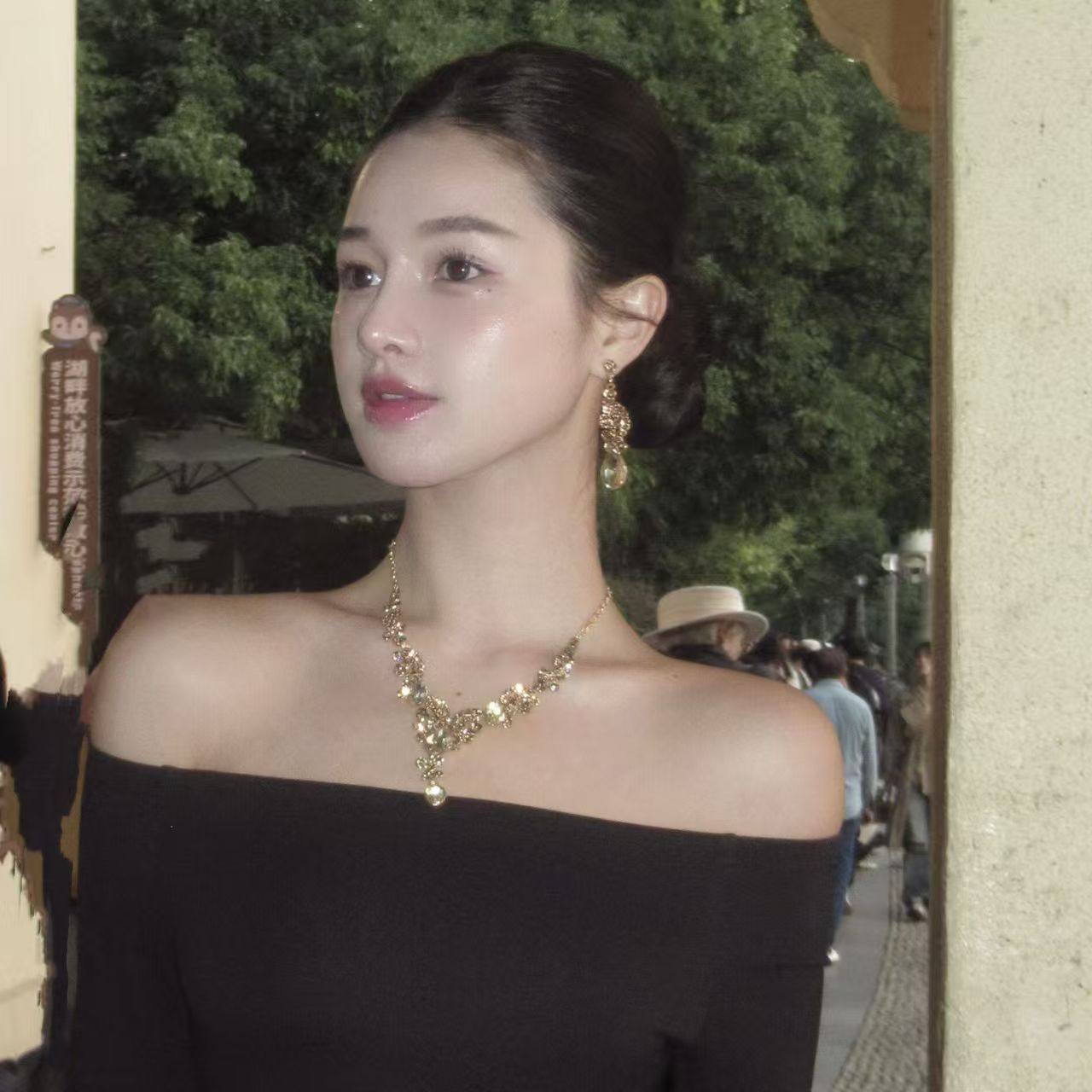欧美夸张香槟色镶钻镂空水滴蝴蝶项链女晚礼服配饰锁骨链流苏
