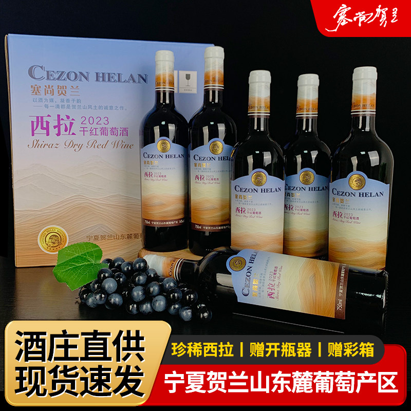 【宁夏红酒】塞尚贺兰/西拉干红葡萄酒750mlx6瓶国产微醺红酒整箱