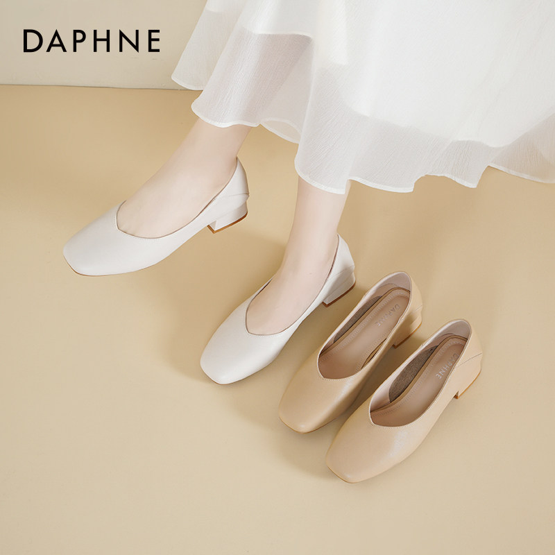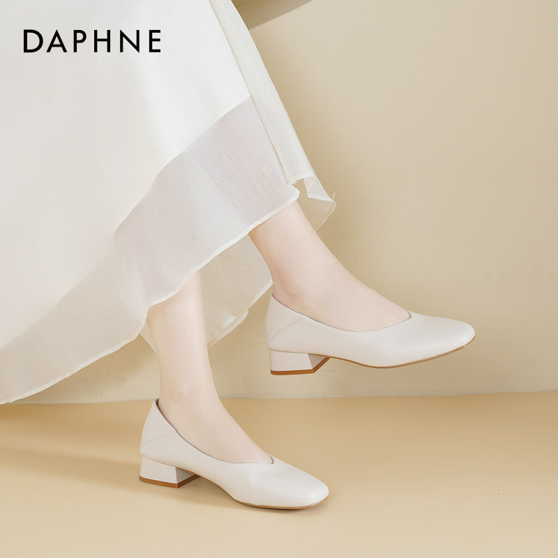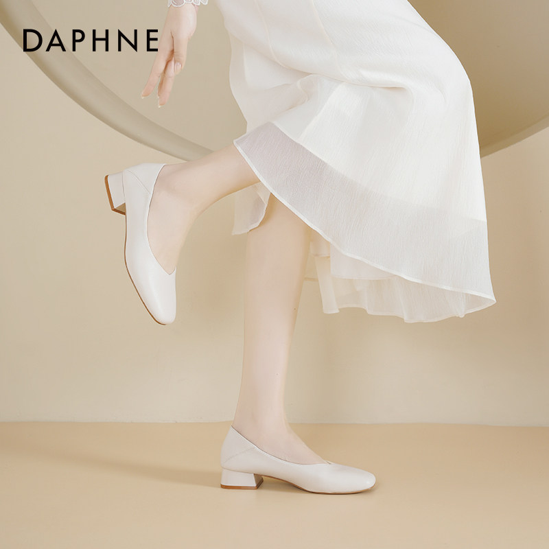 达芙妮粗跟单鞋女2026新款春季鞋子女职业面试高跟鞋浅口小皮鞋女