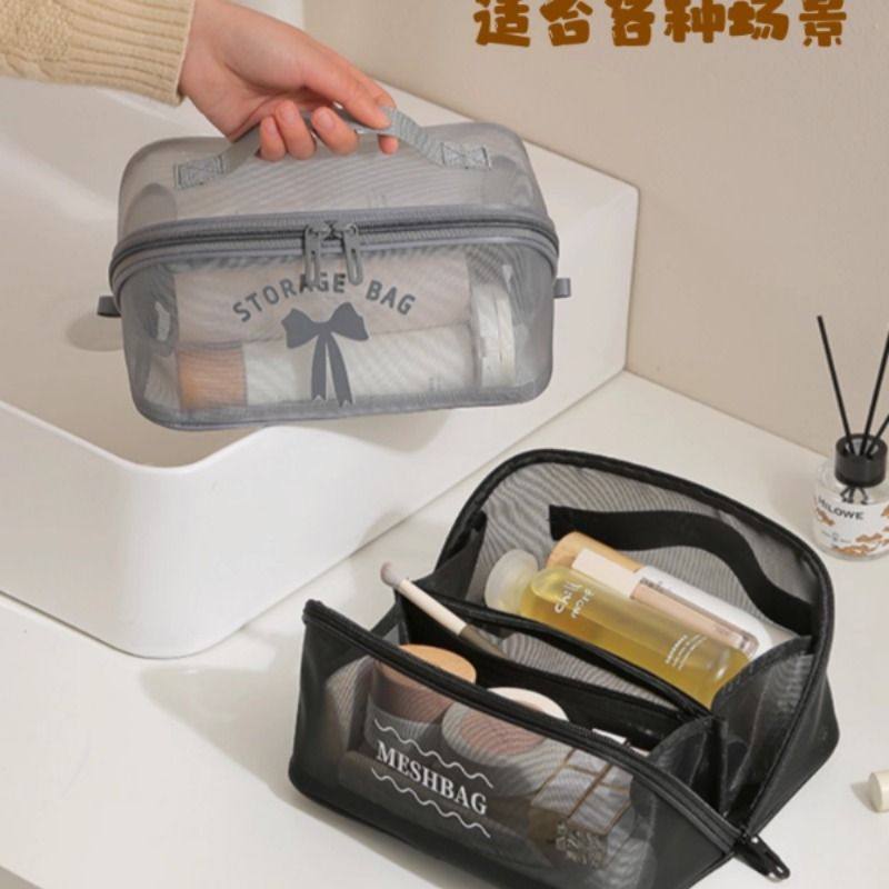 便携洗漱包旅行游泳化妆包手提出差防水网眼洗澡健身沙滩包收纳袋