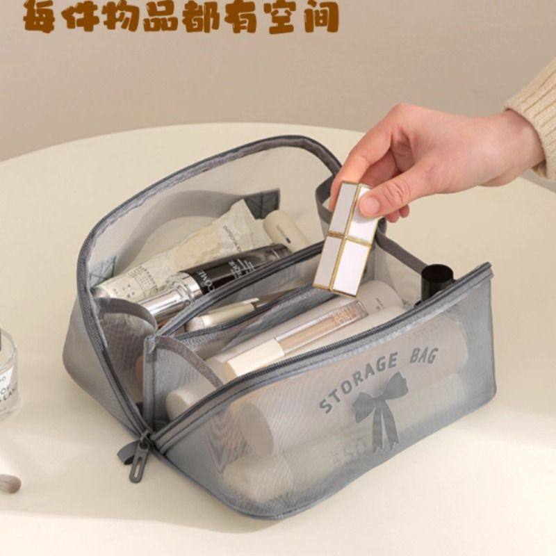 网纱化妆包洗漱收纳包便携式收纳袋整理包零钱笔袋证件袋口红网格