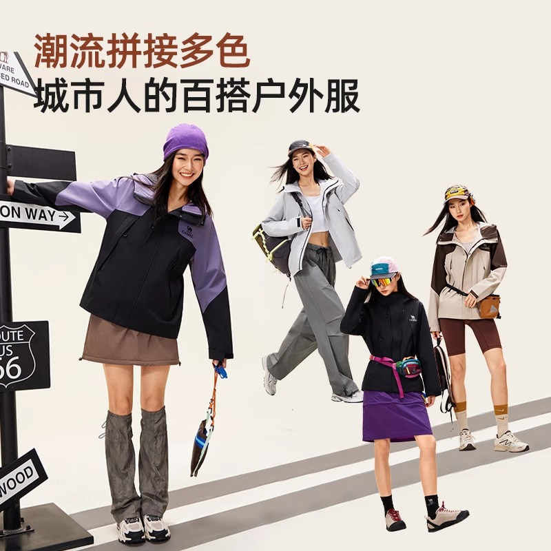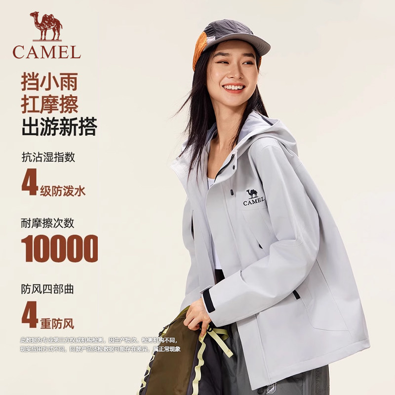 骆驼女装单层冲锋衣2025新款秋冬户外防风防水连帽立领男女款外套