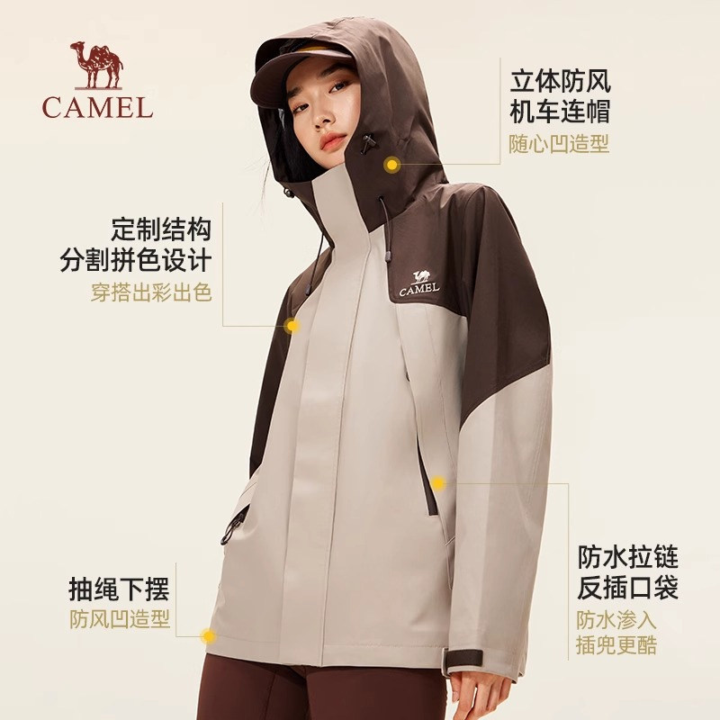 骆驼女装单层冲锋衣2025秋冬新款户外防风防水连帽立领男女款外套