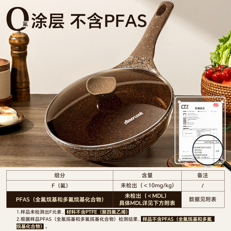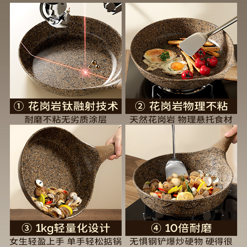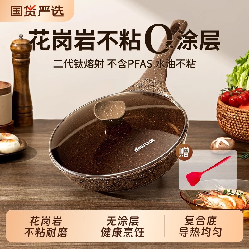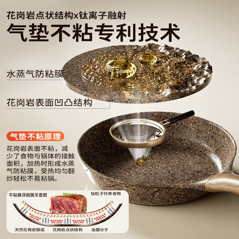 钛红芯控温平底锅不粘锅家用无涂层炒菜煎蛋牛排电磁炉专用深煎锅