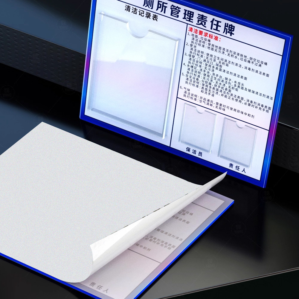 卫生间管理责任牌洗手间标识牌男女厕所清洁保洁记录表插卡式A4亚克力卡槽指示牌公示牌监督卡定制