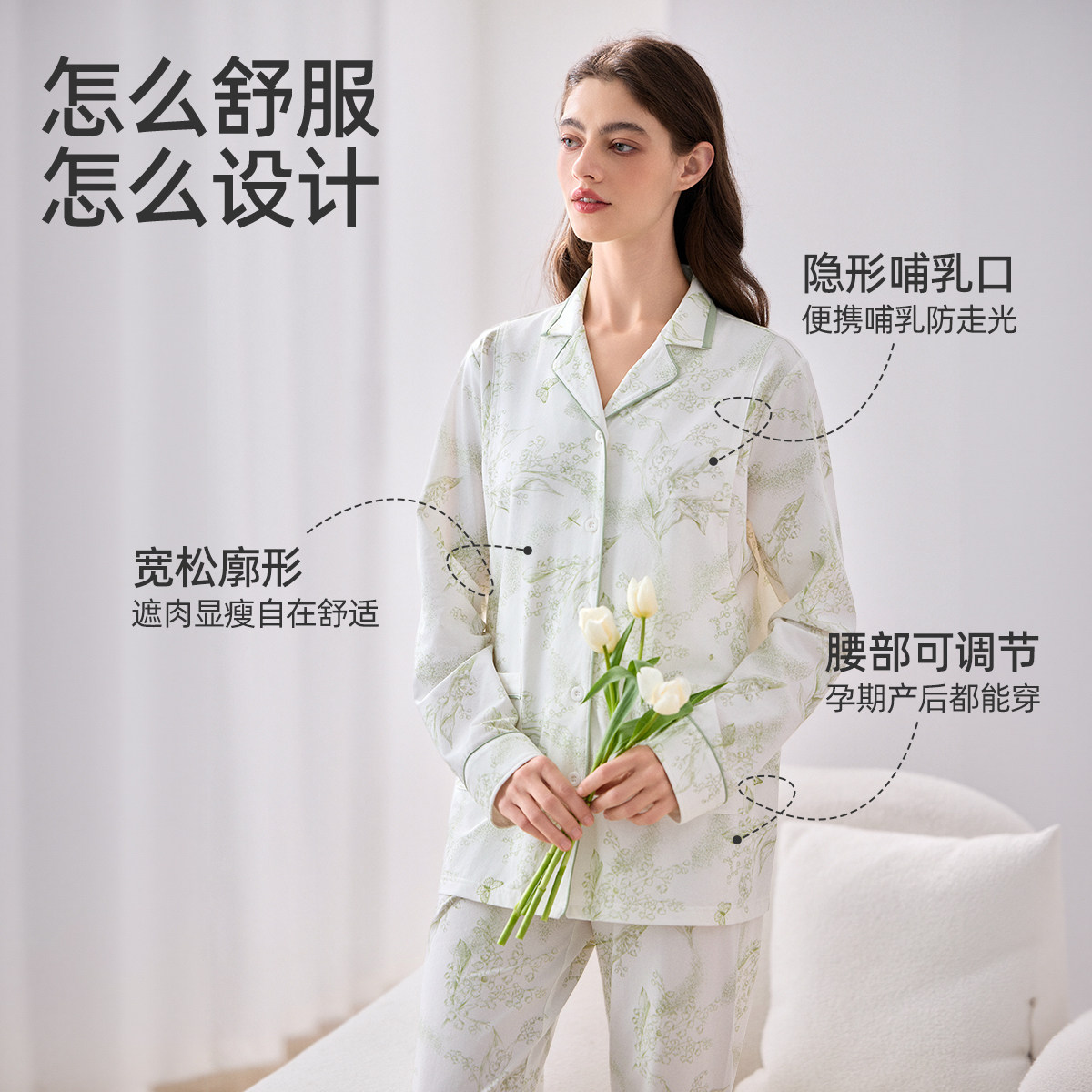 婧麒月子服春秋冬纯棉9-12月孕妇孕期睡衣喂奶哺乳衣家居服套装