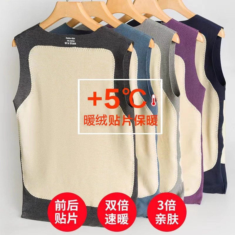 男士秋冬无痕暖绒贴片保暖背心加绒加厚无袖打底衫坎肩马甲磨毛