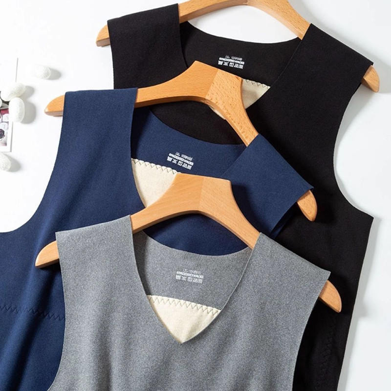蚕丝德绒保暖背心男加绒加厚秋冬无痕发热坎肩中老年打底内穿马甲