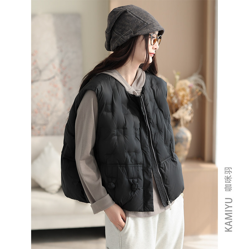 羽绒马甲女秋冬新款白鸭绒圆领女士宽松百搭气质女装外套羽绒服