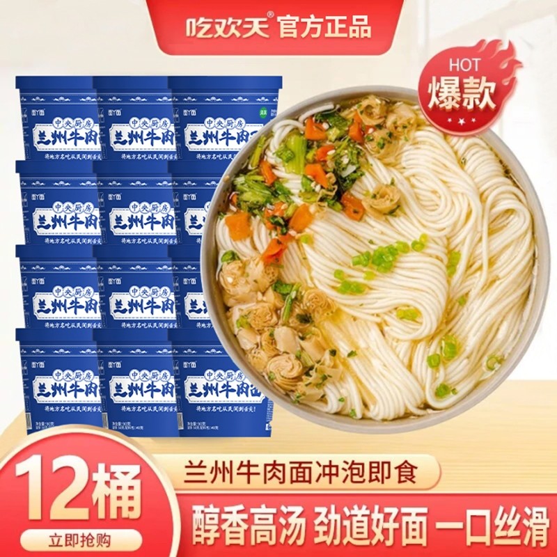 吃欢天正宗兰州牛肉拉面桶装非油炸泡面速食方便面整箱批发牛肉面