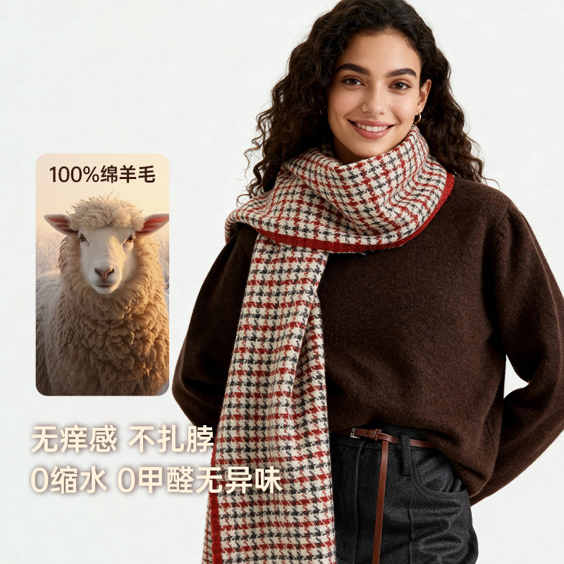 JESSIEJANE2025新款羊毛千鸟格围巾女冬季高级感披肩两用送礼甄选