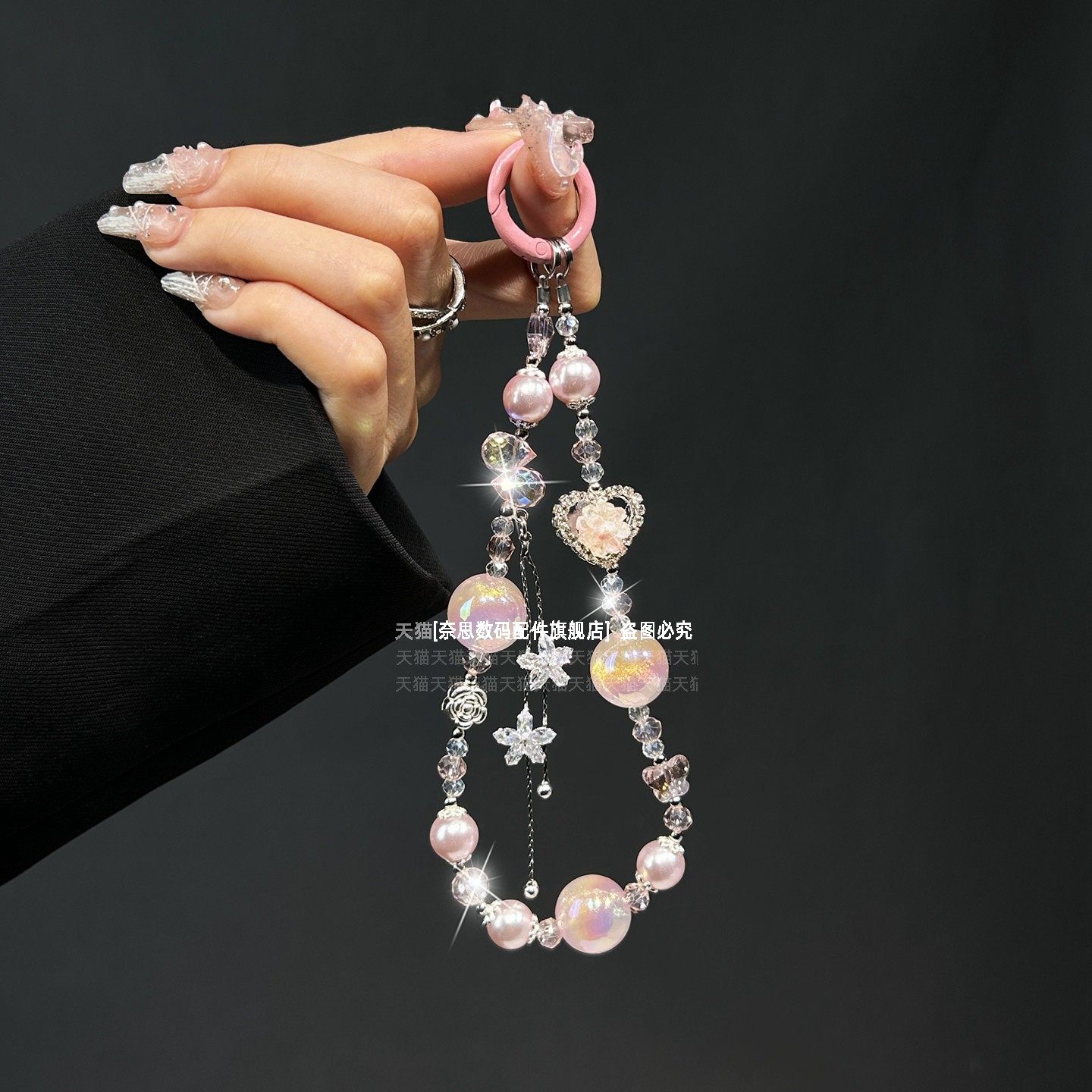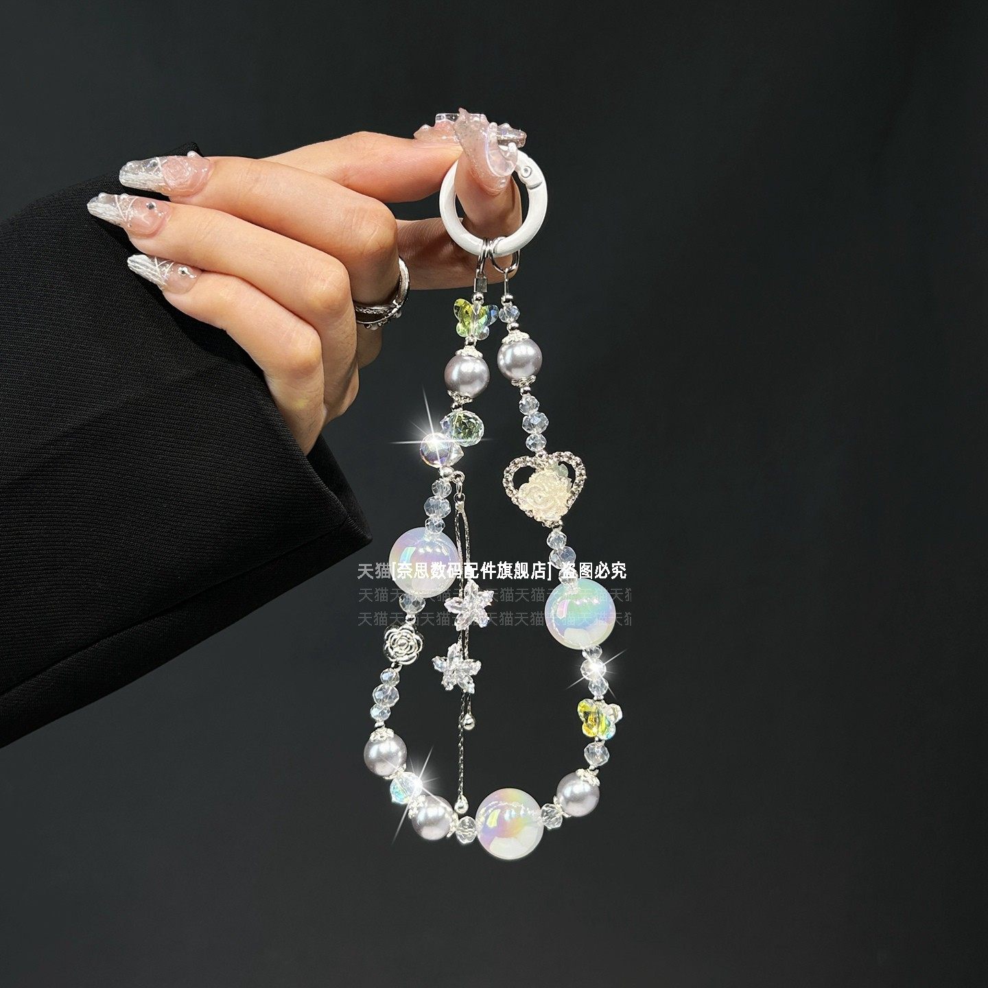 重工新款手机链超闪星星流苏仙气链条水晶爱心花朵气质手腕挂链小众高端珍珠手链旅游防丢挂饰垫片包包钥匙壳