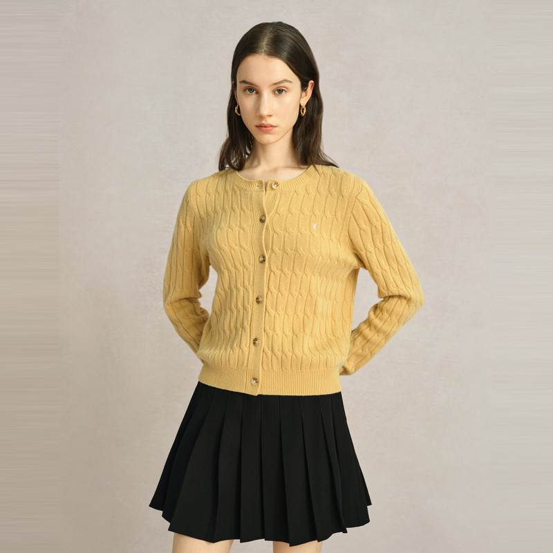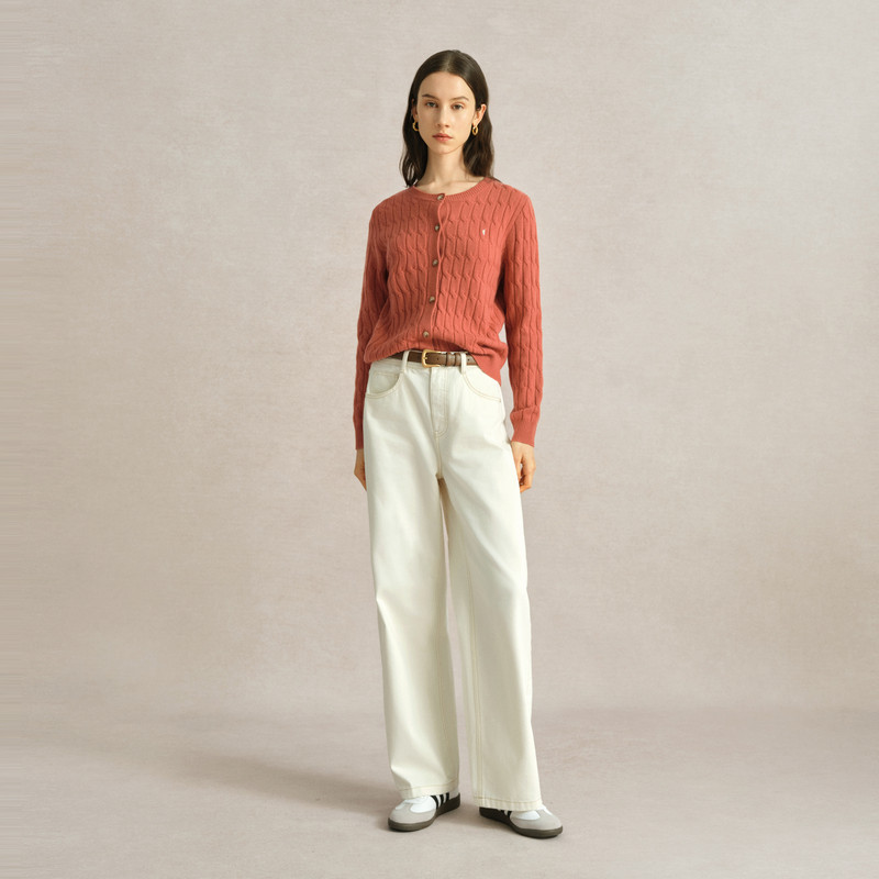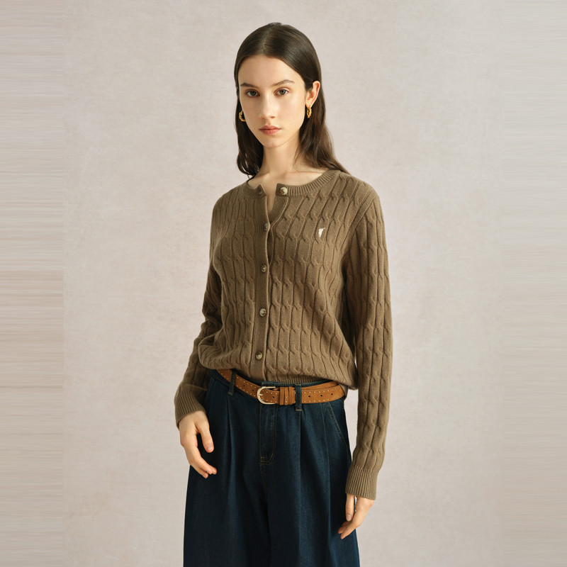 【100%绵羊毛】POLOWALK女士羊毛衫秋冬圆领纯色薄款羊毛开衫女款